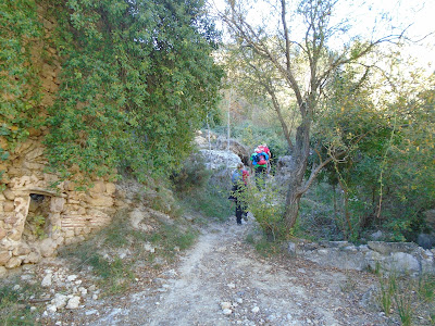 En una cruïlla de camins Biel ens parla dels antics camins que creuaven la Vall de Gallinera, i alguns dels antics nobles partien les seues possessions, nosaltres veiem les indicacions d'Alpatró i Benissili, ara seguim el camí cap a Benissili.