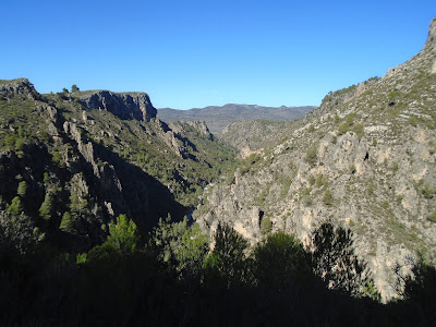 Vam seguir cap a Planes acompanyats d'aquella multitud que era un grup que vénia de la Safor. Ara la senda ens portava per una zona molt escarpada de profunds barrancs que embriagava la vista, paisatges de penyes altes i verdor escampada, racons per tornar i aturar el temps.