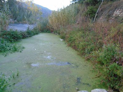Vam eixir del poble i vam anar cap al riu i davant de l'aqüeducte ens va explicar algunes coses, podem veure l'aqüeducte, és d'època islàmica, a l'altra banda de riu hi havia unes estructures, hi havia 14 cases morisques. L'Almasraka era una antiga alqueria musulmana, volia dir la solana, és un lloc on li pega prou el sol, en 1602 s'esmenta aquest espai.