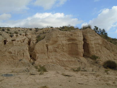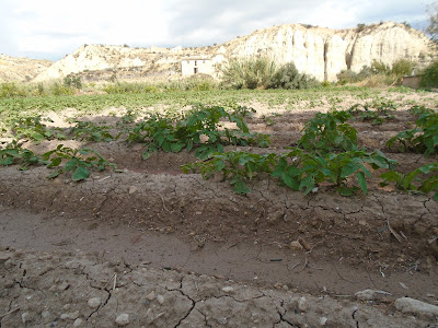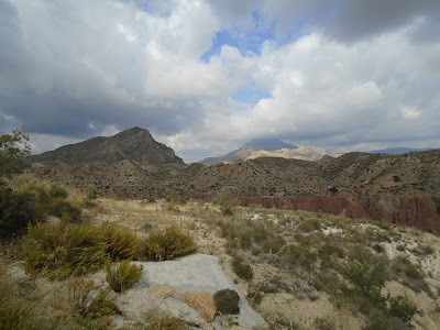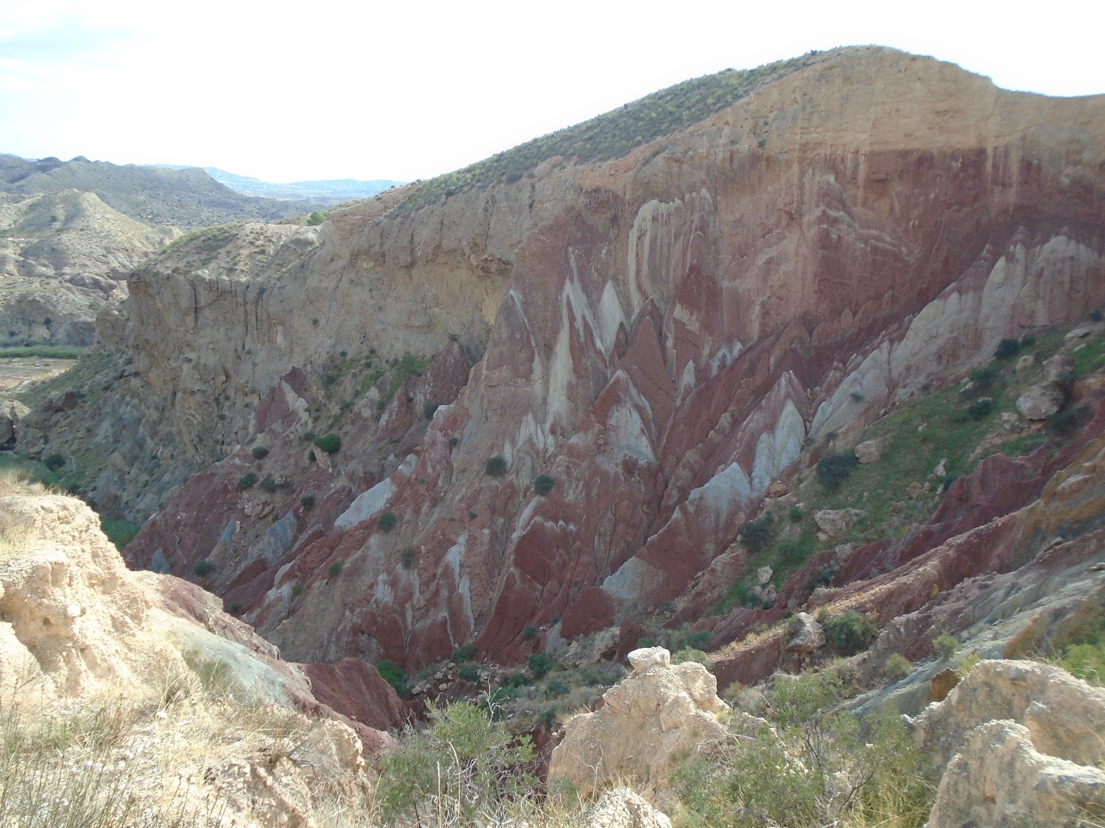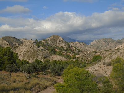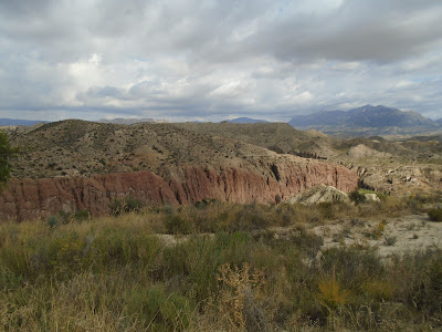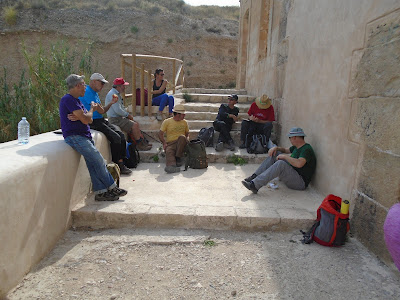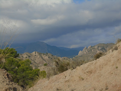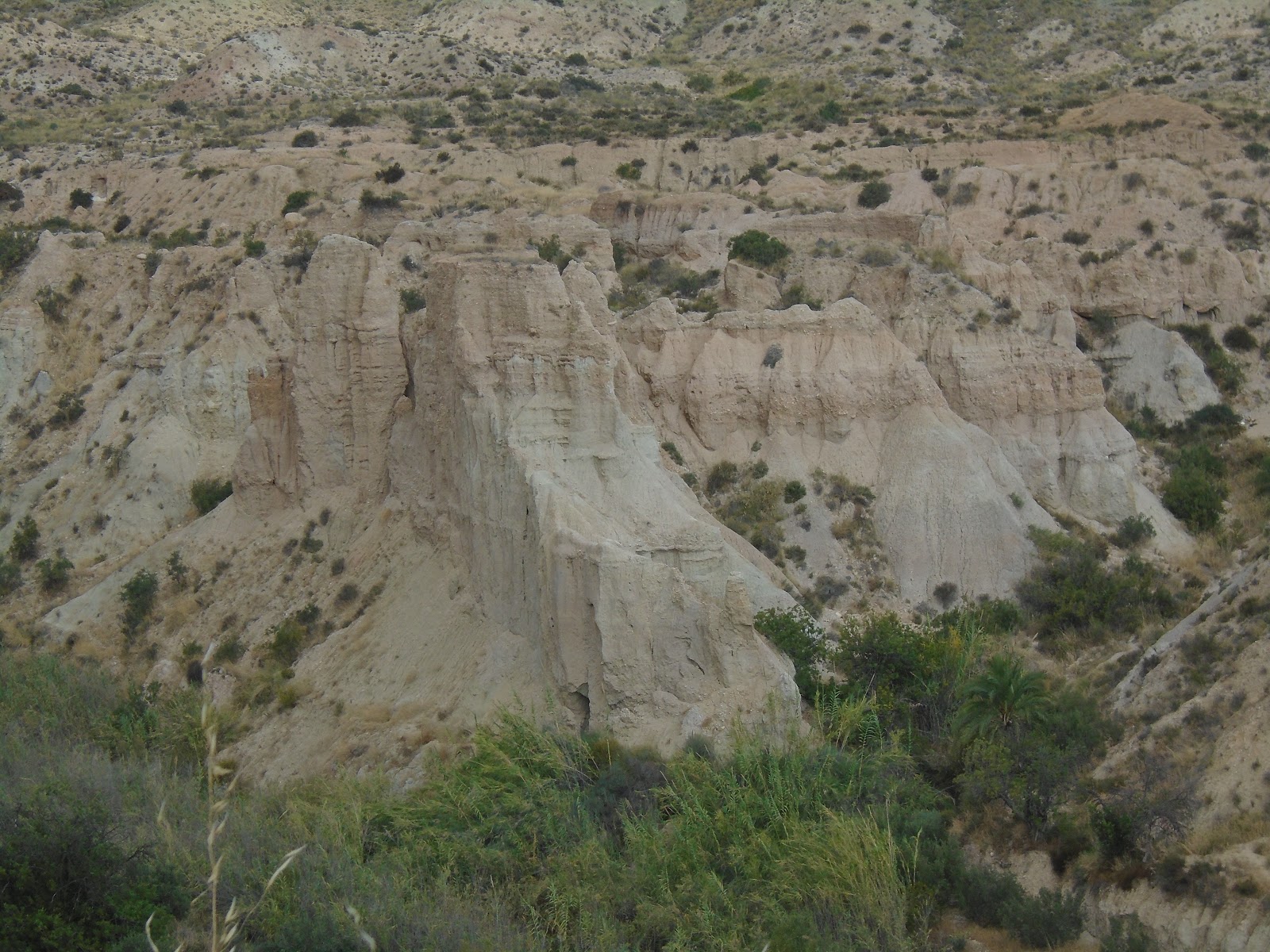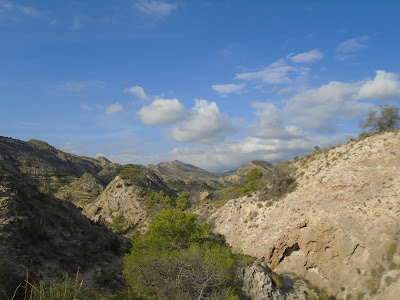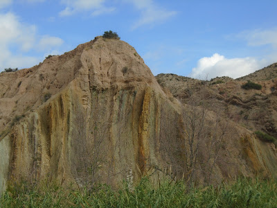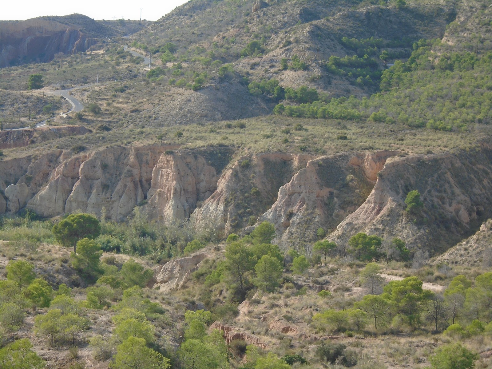 Ràpidament el paisatge ens va mostrar la seua aridesa , on l'escassa vegetació arrapava la terra , alguns pinarets anaven cobrint l'argila blanca que cobria les muntanyes, els pins havien de suportar la pressió de la prossecionària que com ens van explicar, encara que aparentment no és veia ja anava formant capollets minúsculs a les tiges dels pins.