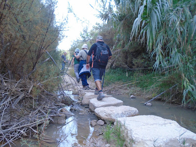 Vàrem creuar una altra vegada el riu, que anava acompanyart de la verdor dels canyars i per dinar vàrem arribar a l'Assut de Mutxamel, allà vàrem dinar i vàrem cantar algunes cançonetes de Mutxamel i Sant Joan. Vàrem escriure al llibre de l'Alacantí i despres de fer un mosset i que Àngel Ferrero ens fera unes explicacions vàrem seguir la marxa. Vàrem seguir el riu i després vàrem arribar a l'assut de Sant Joan, ens vam aturar per veure el salt d'aigua i l'espectacular estructura de l'assut.