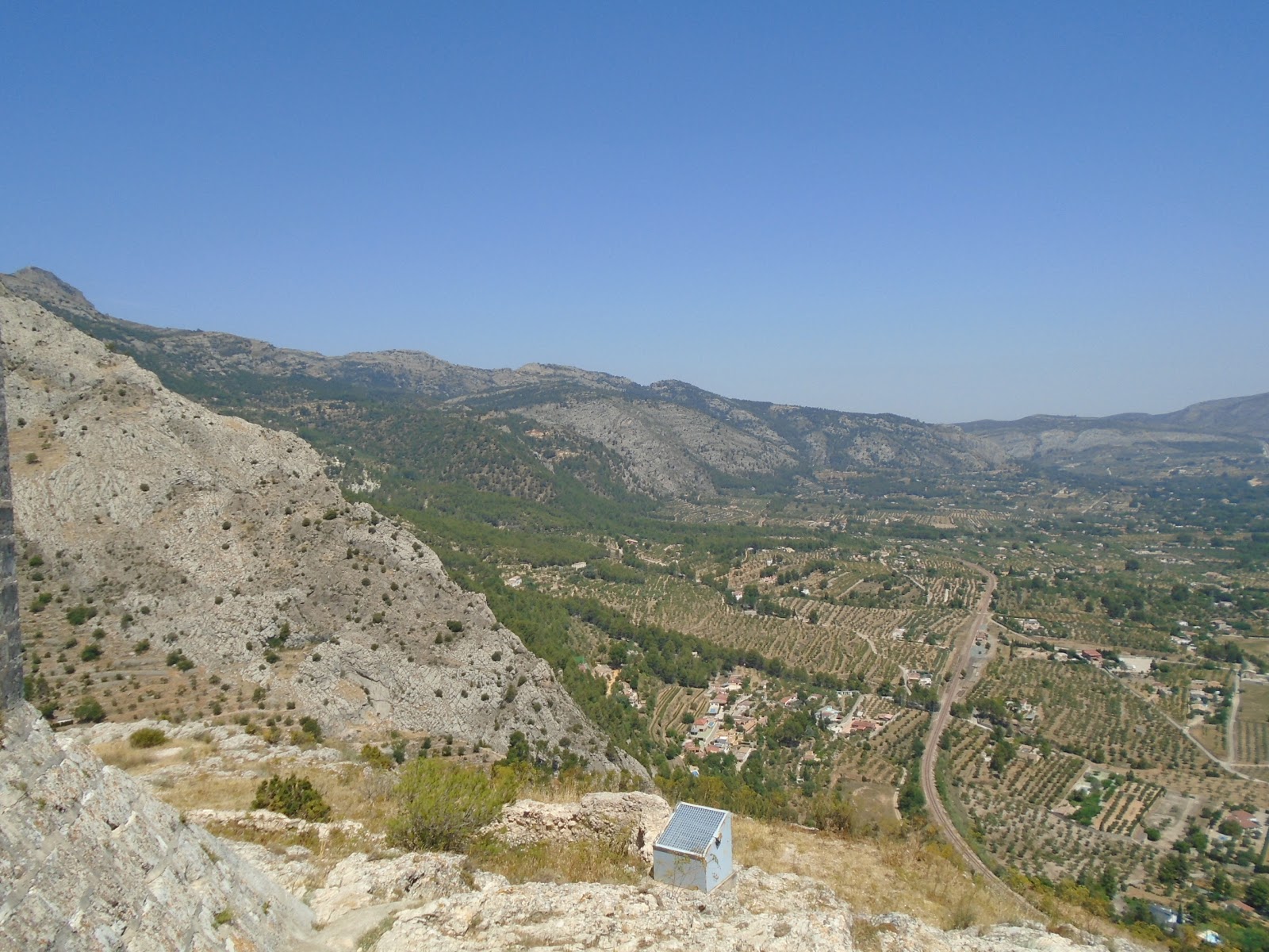 Una vegada més descansats ja vàrem tornar al camí , cada vegada la calor apretava més, en una altra espenta vàrem arribar al Castell de Cocentaina, vàrem fer un altre descanset, Paco tenia preparat el seu cotxe amb marraixes d'aigua i el cotxe per si feia falta, algunes persones vàrem pujar al castell de Cocentaina, des de dalt es veia Cocentaina allà baix, es podia diferenciar molt bé la part vella de la nova del poble, més enllà el Comtat fins l'embassament de Beniarrés. A la banda nord el Benicadell amagava la Vall d'Albaida.