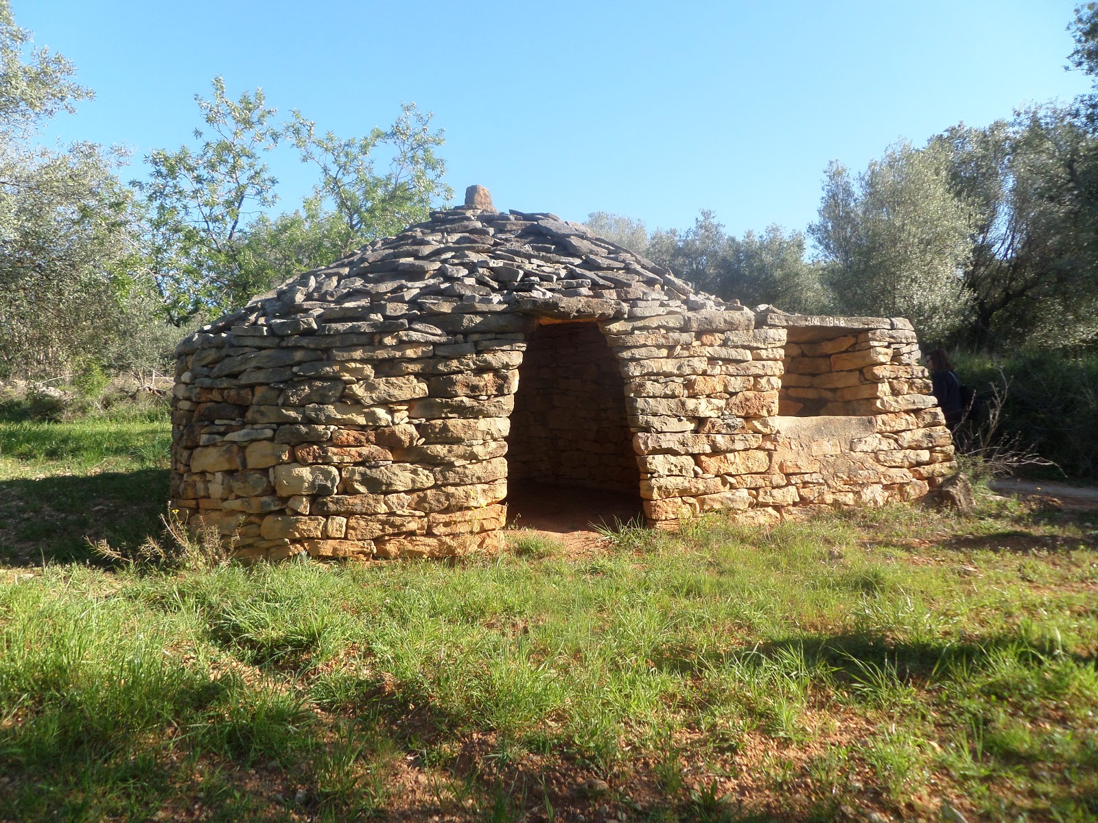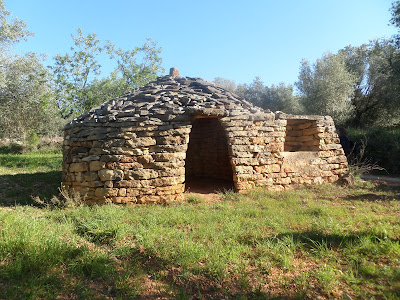 Vàrem seguir per un paisatge de camps de conreu, d'ametlers i marges plens d'espàrrecs, de tant en tant alguna cabana de volta trencava la continuitat dels conreus.