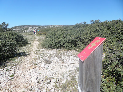 Déspres d'esmorzar ens vam acomiadar de Sofia, Mario i Tània i els van seguir cap a Catí a més ritme, a poc a poc vàrem pujar la costera  fins a dalt de la lloma i per un paisatge on el coscoll pintava a clapes les muntnyes , vàrem arribar a l'ermita de Sant Vicent, antiga ermita on va predicar Sant Vicent Ferrer, des d'allà teniem una molt bona panoràmica de Catí. La calor apretava ja i les cares de la gent començaven a pansir-se. Vam devallar la pista i vam arribar a Catí. És la primera vegada que arribem més d'hora de l'hora prevista, encara vam poder anar a recuperar els cotxes.