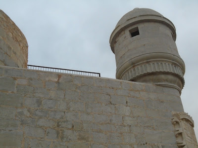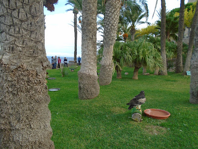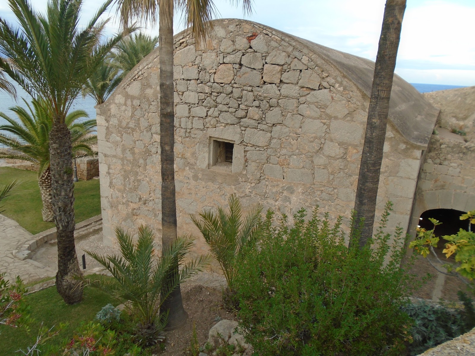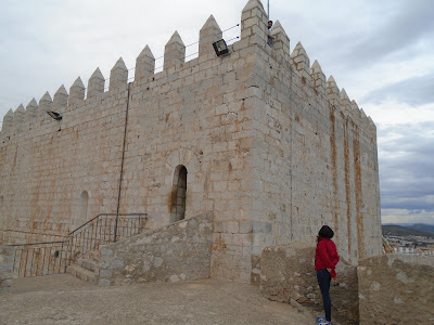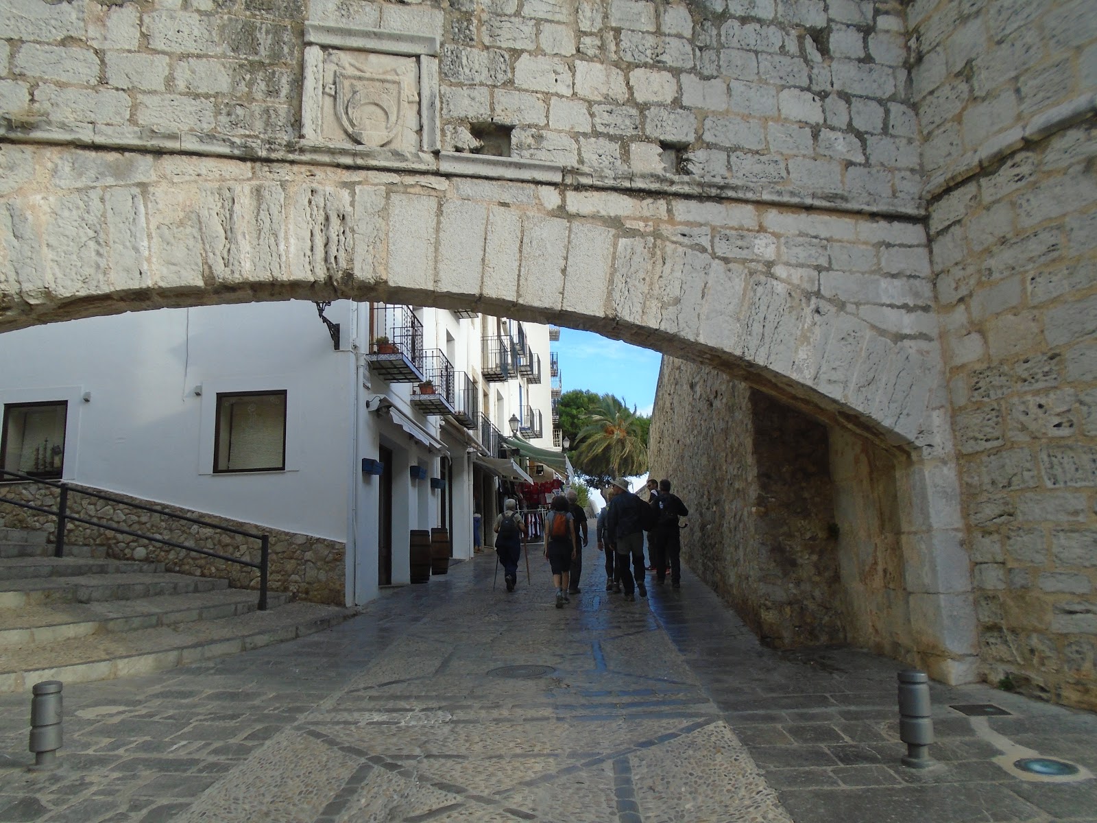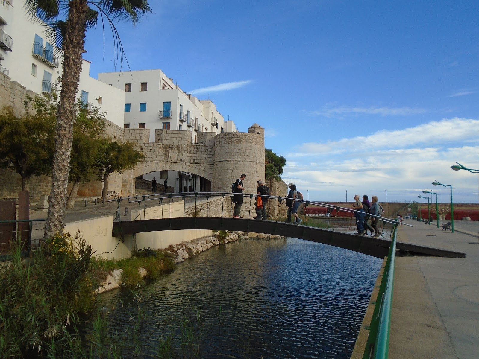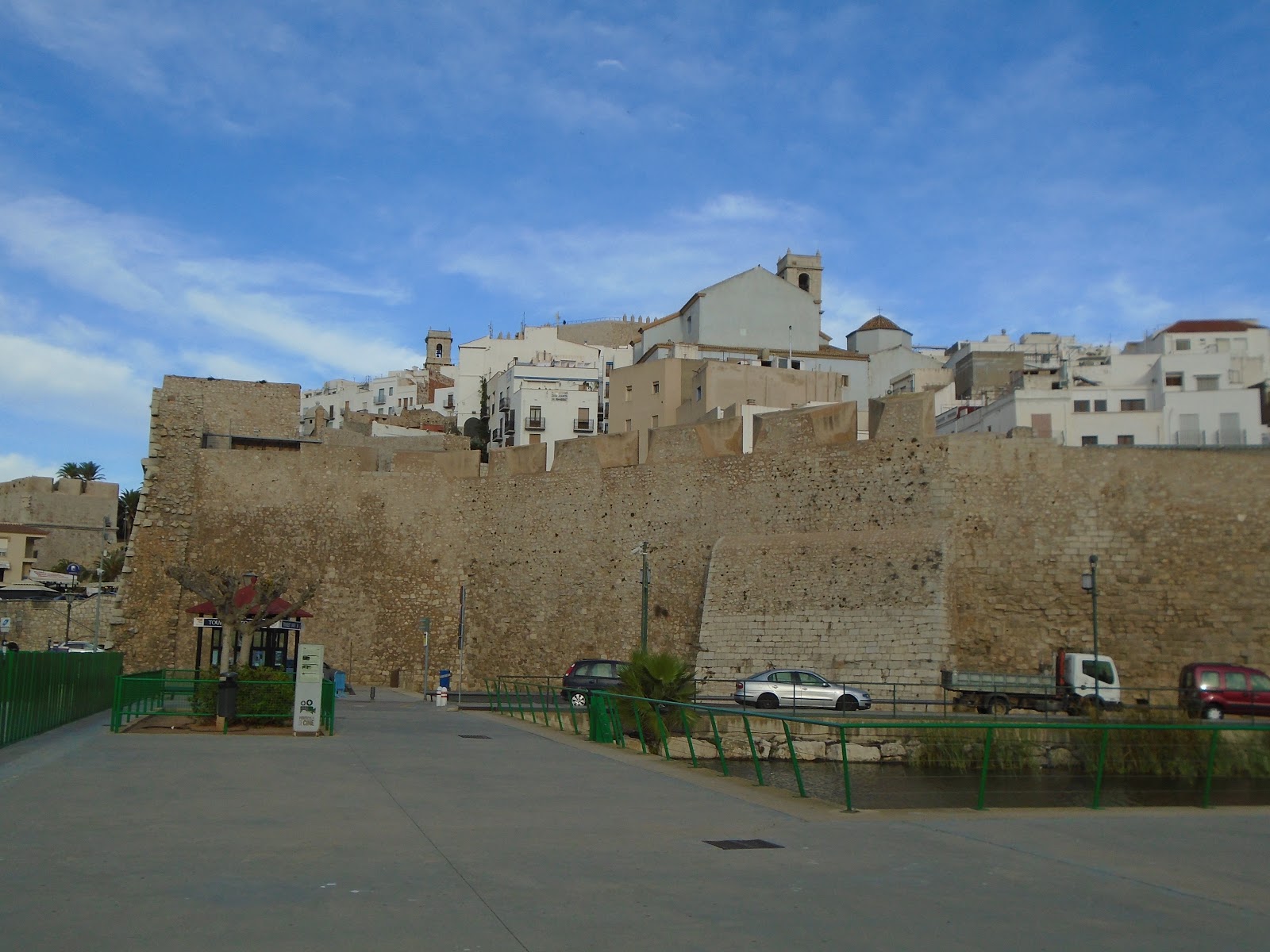 En passar vora muralla Paco ens va mostrar a l'esquerra el bufador, en dies de maror la mar travessava el carrer per sota i pel forat ensopegava amb la roca i esclatava l'escuma, hui sols es sentia la remor de l'aigua. Seguíem pels carrers de Peníscola, passàvem per una casa folrà de petxines, curosament posades, anomenada "la casa de la concha". Seguíem caminant pels carrers empedrats coronats per cases emblanquinades . Ens vam dirigir als jardins del castell. Una vegada les entrades a la mà ens disposàvem a entrar, però per sobre de la bellesa de l'indret amb palmeres vora mar, una fiblada ens feria els ulls, per voler donar-li una aire medieval havien clavat a terra algunes aus rapaces amb una cadena, els pobres animals no es podien moure i si intentaven volar es pegaven un sotrac amb la cadena, però per acabar de rematar el mal de cor, hi havia escampats sobre la gespa alguns pollets menuts morts que les aus anaven esmicolant, una escena molt desagradable. Vàrem deixar els jardins per pujar al castell, després de pagar l'entrada vàrem passar per un replà , una visió impressionant de les muralles i de la costa de Benicarló es podia veure. Poc després vàrem entrar dintre les estances del castell, vàrem passar per les diferents sales, les cavallerisses, el menjador on podíem veure alguns estris, la presó, una sala sense finestres que sota una reixa apareixia als nostres peus, em venia una tremolor de pensar les condicions que havien de patir els presos.