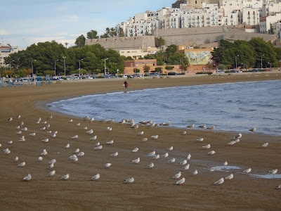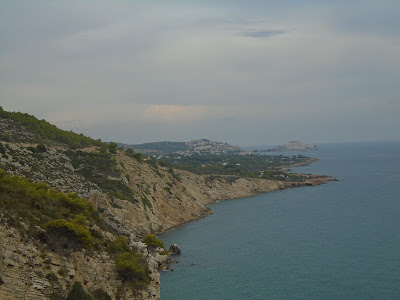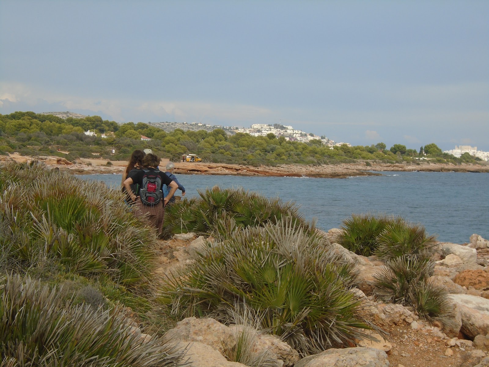 Seguíem amb la vista posada a Peníscola que ara és retallava a l'horitzó amb les cases apinyades i per un istme enganxades a terra. Després de descansar vam seguir cap a Peníscola, el penya-segat prenia consistència i el tallat sobre a la mar ens donava vertigen, on la serra d'Irta ensopegava amb les ones. Un pi es retallava sobre la blavor de la mar i creixia sobre el tallat de roca, el paisatge era una llamineria pels nostres ulls i cada trosset ens sorprenia. Era realment espectacular. Ara seguíem per una sendeta pedregosa vora la mar fuetejada per les ones i l'escuma. Feia molt de goig fer camí vora mar. El fonoll marí i el margalló arrelaven entre les roques . Cada vegada la silueta de Peníscola és retallava més propera. Passàvem finalment per un tros de carretera una mica perillosa que calia vigilar per la resta del grup, i en un darrer esforç i arribàvem a Peníscola. Un estol de gavines estaven a la platja, imnòtiques i immòbils totes mirant cap a sud. Eren les 16:30 i acabàvm d'arribar a Peníscola, ens organitzàvem amb els cotxes per la gent que no es quedava a la visita i la resta ens endinsàvem amb aquesta segona fase del full de ruta, la visita de Peníscola i el castell.
