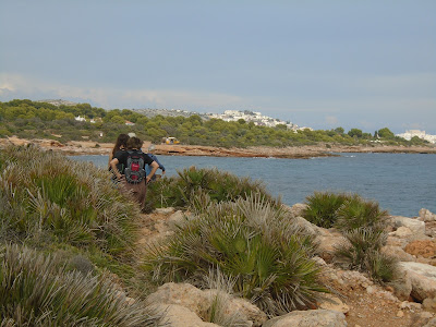 Vam seguir la finca fins enfilar-nos per una senda i arribar a l'altra vessant on teníem una panoràmica espectacular de tota la costa, un moment que la gent del grup aprofitava per desar la imatge al record de la càmera. Seguíem devallarnt, ara per una senda pedregosa fins arribar al poblat morisc d'Irta, després de l'expulsió dels moriscos el 1609 va quedar abandonada, era una alqueria medieval dintre del Clot de Maig.