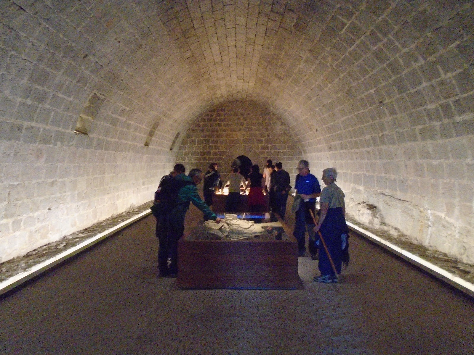 Creuàvem el pontet sobre la sèquia i entràvem pel portal, dintre del recinte emmurallat, dalt de la porta, picat a la pedra, veiem la insígnia de la lluna i les claus, gravat que es repetiria per tot el recorregut, símbol del Papa Lluna
