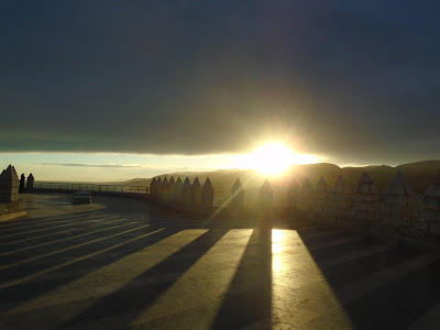 Vam pujar al sostre del castell i encara que ens van contar que la pavimentació va ser poc encertada per un castell, vam arribar en el moment de la posta de sol on els raig fregaven els merlets regalant-nos una posta de sol inimaginable, deixant-nos una de les imatges més extraordinàries del dia.