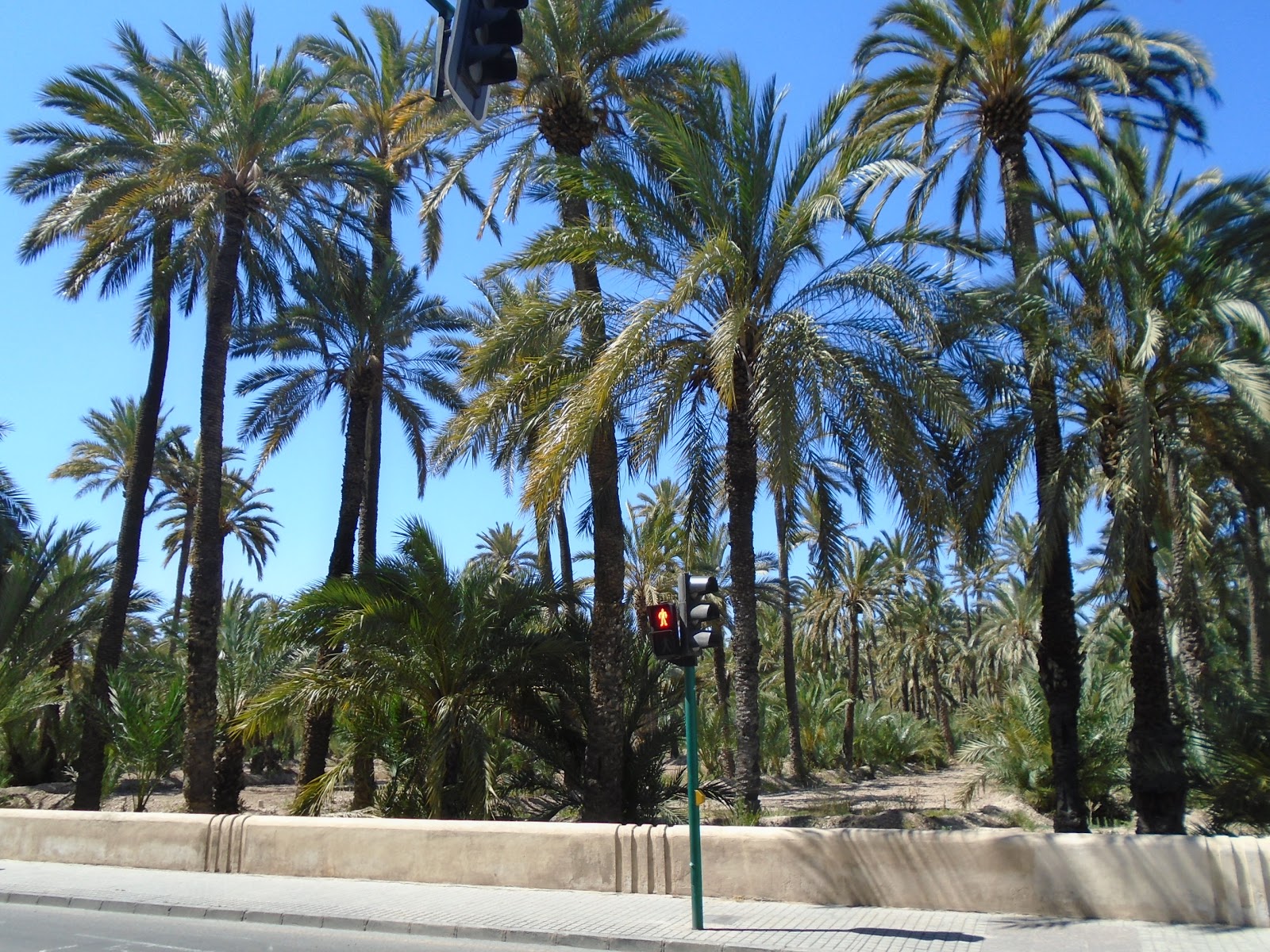 Vam seguir el camí d'Elx, el paisatge anava combinant diferents conreus: les palmeres, que sorgien cap al cel d'entre la resta de conreus , magraners, i alguna finca molt gran d'horta, com una de carabasses que es perdia a l'horitzó.
