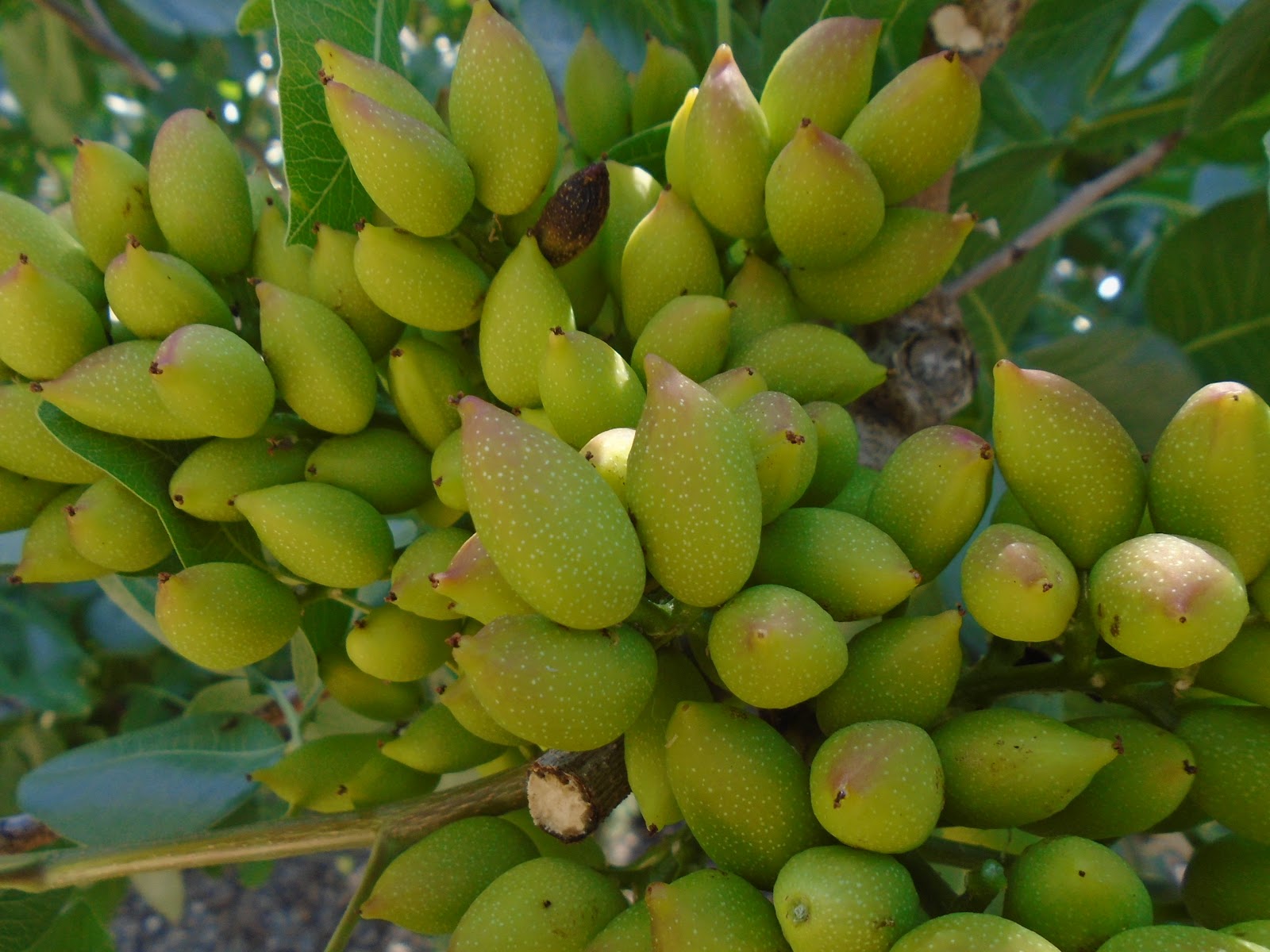 En mig del palmerar dos arbres de Pistatxo, en aquest cas femella |