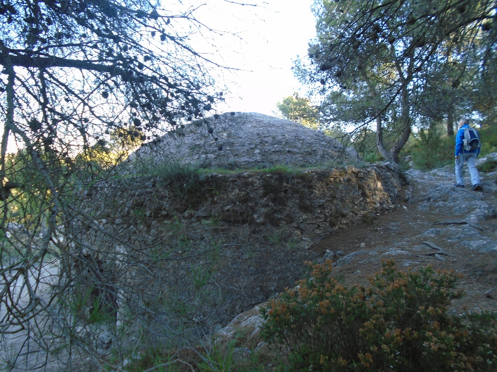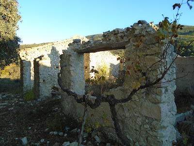 Després de dinar van vindre Pepe i Graciela i vam fer una volta per veure unes carrasques monumentals. Sota les carrasques també hi havia les despulles d'una antiga construció, tal vegada un antic riurau, vàrem seguir un trosset de l'inici del barranc de l'Infern on seguirem la propera etapa de la Vall d'Ebo a Benimaurell, ja quasi a dos clarors vàrem seguir una mica el trac per un caminet entre pins, però ja hi havia prou de correr món per hui i vàrem tornar cap a casa per descansar per demà