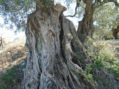 Ens vam trobar una parella de persones majors collint olives, enfeinats amb les xarxes, Biel de seguida en va traure conversa, i al costat del camí una olivera mil·lenària ens convidava a una bona abraçada.