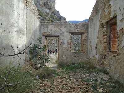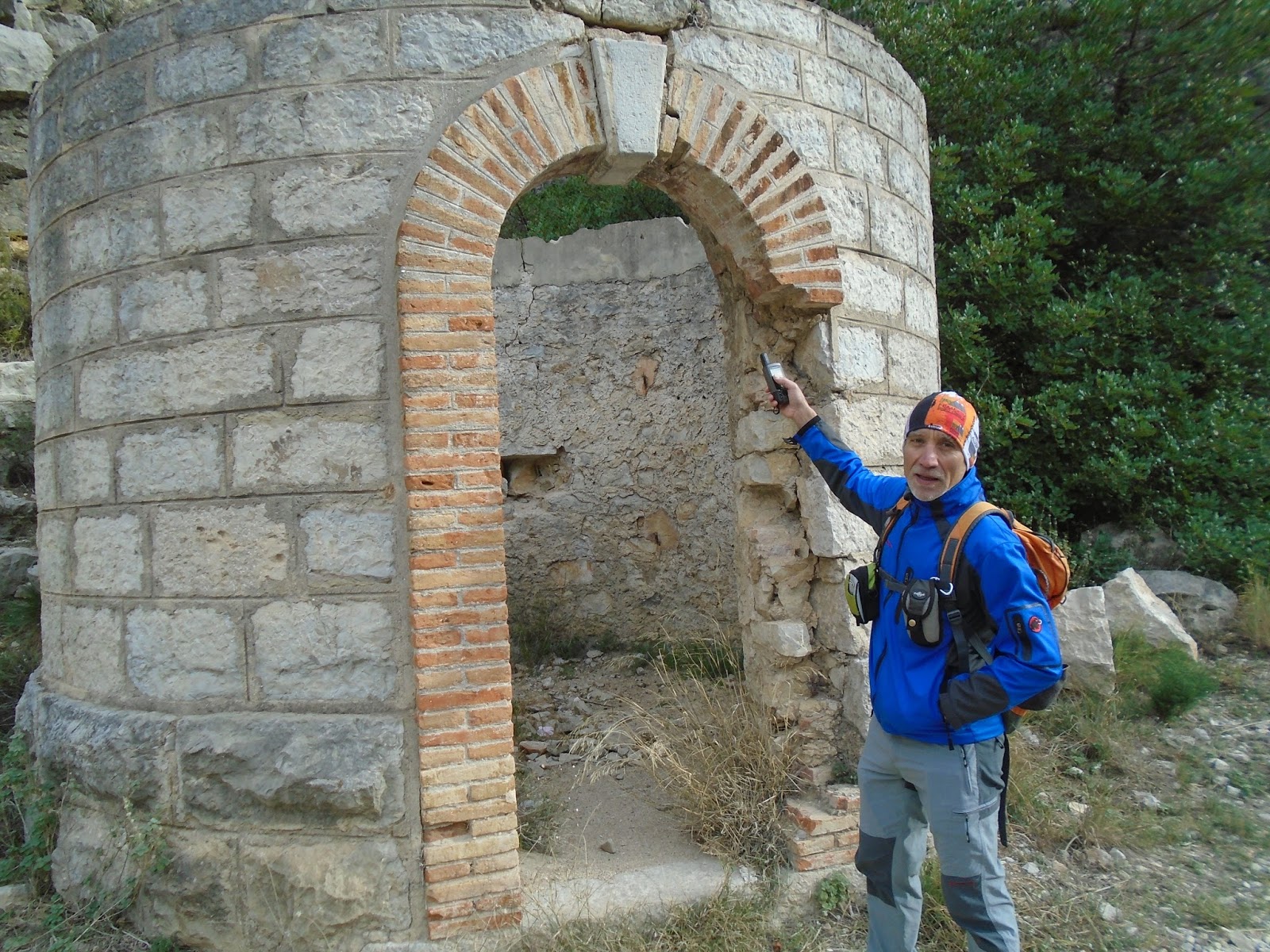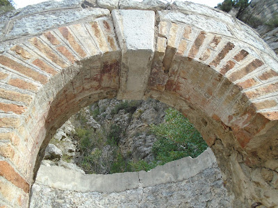Vam seguir per la via verda i la propera sorpresa que ens trobàvem va ser el que quedava de l'antic pont de Ferro, ara sols hi havia les pilastres, però la passarel·la que comunicava les dues vessants havia desaparegut, una altra construcció en runes es suma a les edificacions relacionades amb el ferrocarril.