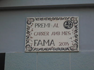 Vam seguir  per una façana on hi havia el nom de FAMA. Estranyats preguntem, són les sigles de Festes Alternatives de la Mare de Déu d'Agost.