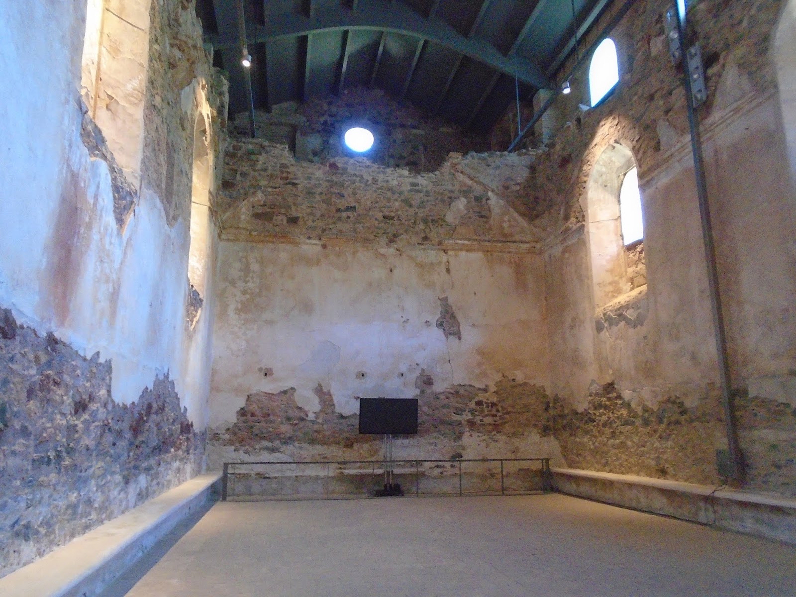 Ala paret vam trobar sobre la pedra roja algun arc que ens indicava una possible porta  que comunicaria amb l'església, fins i tot un arc soterrat que ens podria fer imaginar una variació en el nivell del terra.