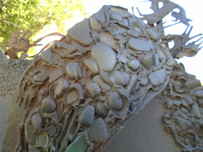Escultura d'un grui a la plaça de l'església de Flaçà