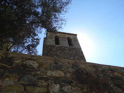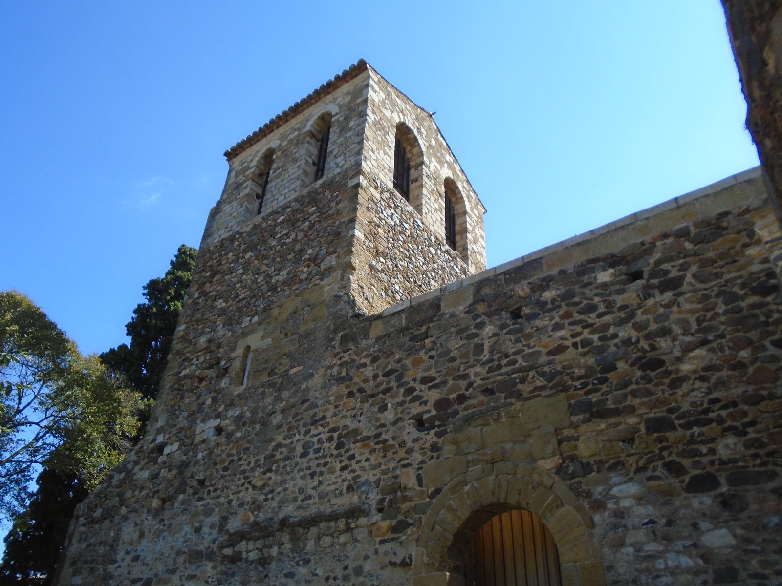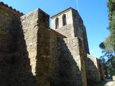En deixar el monestir  seguim el camí cap a Cruïlles, el poble es deixa veure a l'horitzó, i destaca la torre vigia i l'església.