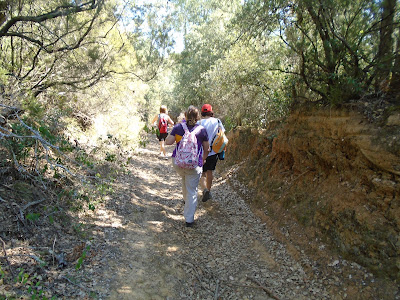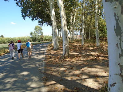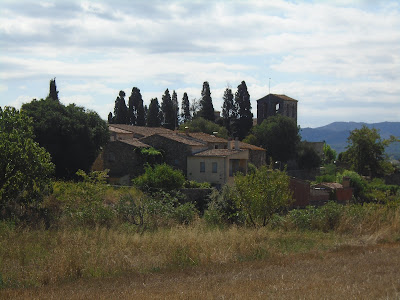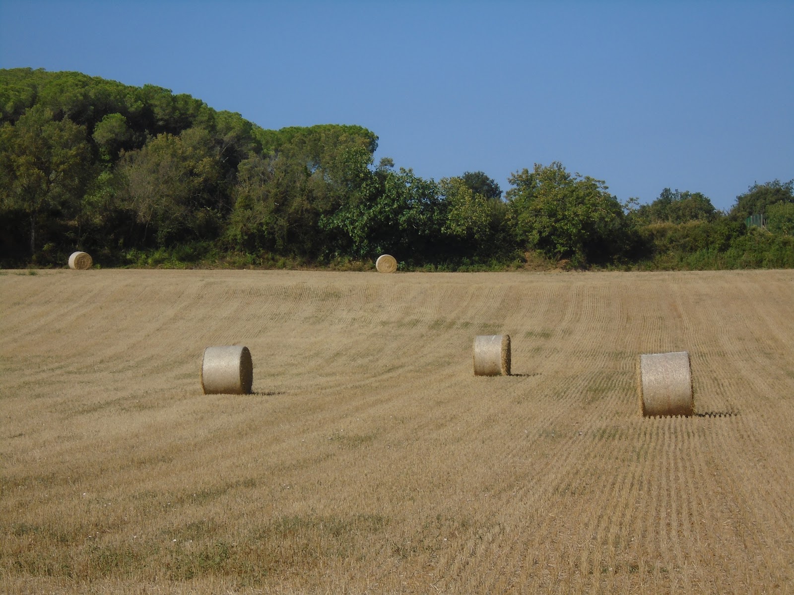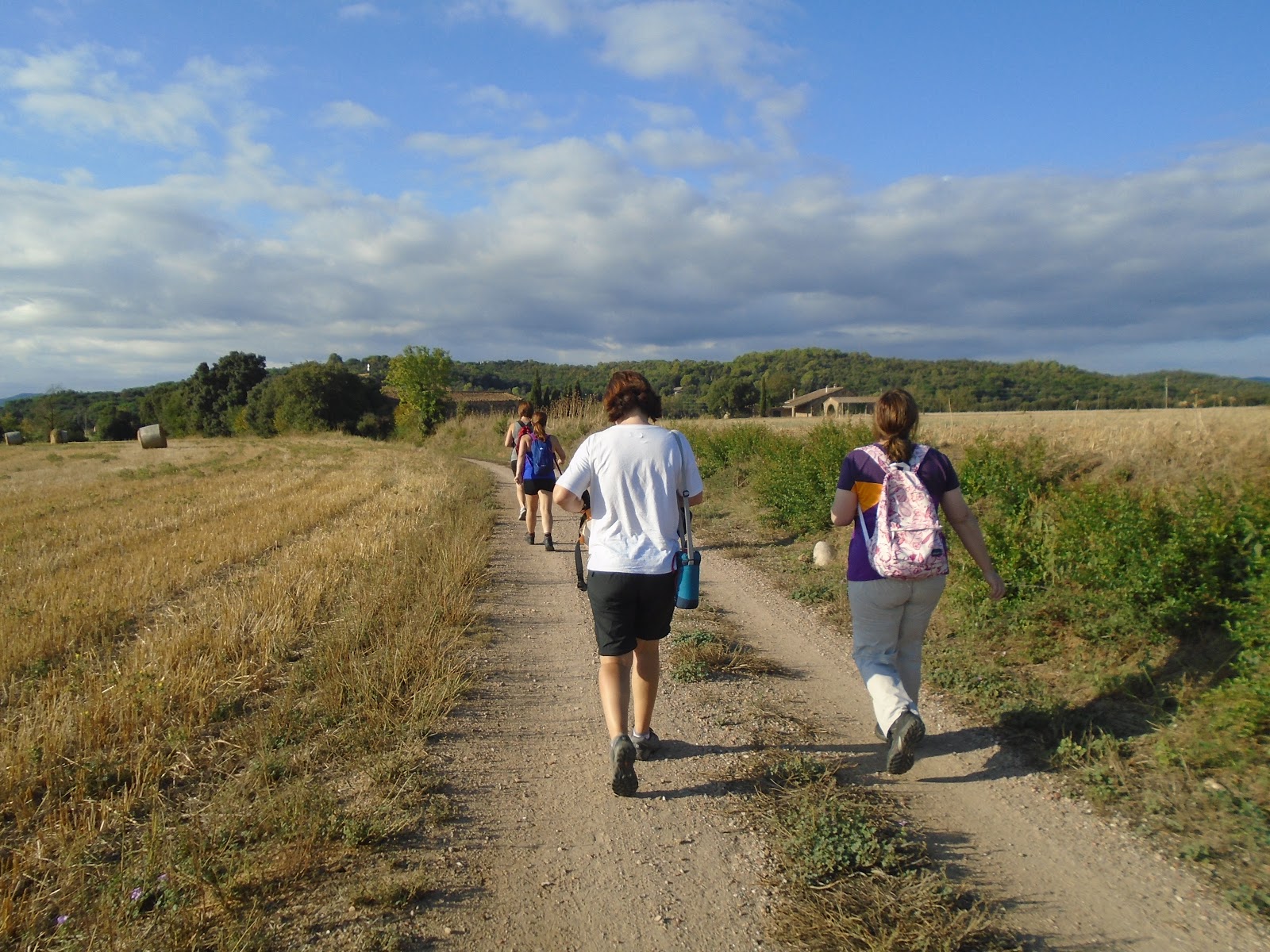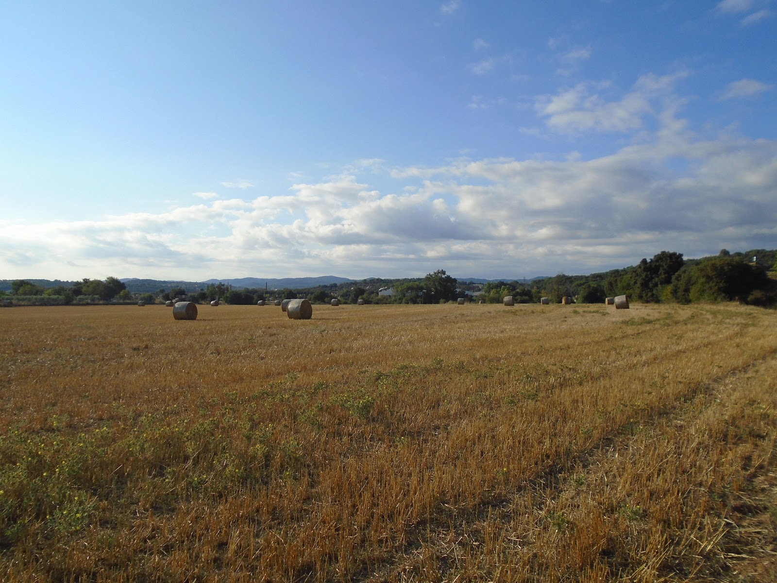 Per això ens vam trobar tot el grup a Corçà d'on començava la nostra aventura, sota l'ombra dels plataners ens vam distribuir, aquelles persones que volien fer el recorregut en cotxe i aquelles que anàvem a peu.  Primer passàvem  per uns camins que creuaven camps  de conreu on enormes bales  rodones de palla  encara romànien als camps, a l'horitzó les Gavarres tancaven la línia dels camps amb el cel.