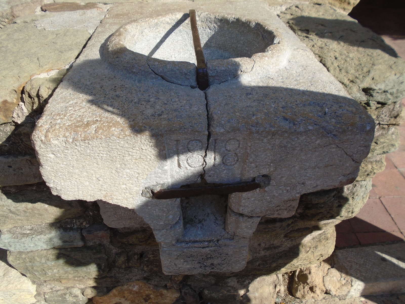 En baixar del castell arribem a la plaça Jaume I, hi trobem una pedra per mesurar el blat, la pedra formava com una cavitat que s'omplia de blat i era una unitat de mesura, hi havia moltes mesures de blat, finalment es van unificar en una mateixa mesura.