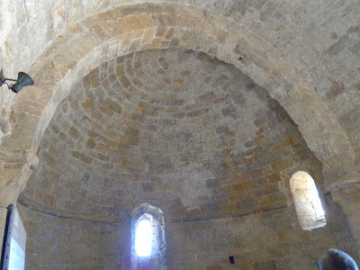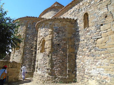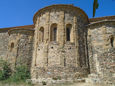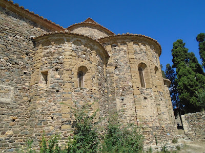 El monestir eren els mateixos monjos que els de Galligants de Girona.  Vam fer una volta pel monestir, la porta principal era tancada, i  un grup de gent estaven practicant ioga sota els pins, arribem a la part de darrera on hi havia l'absis, i en runes, les restes del claustre. Tal vegada la part que més em captivava era l'absis, amb les seues formes arrodonides.
