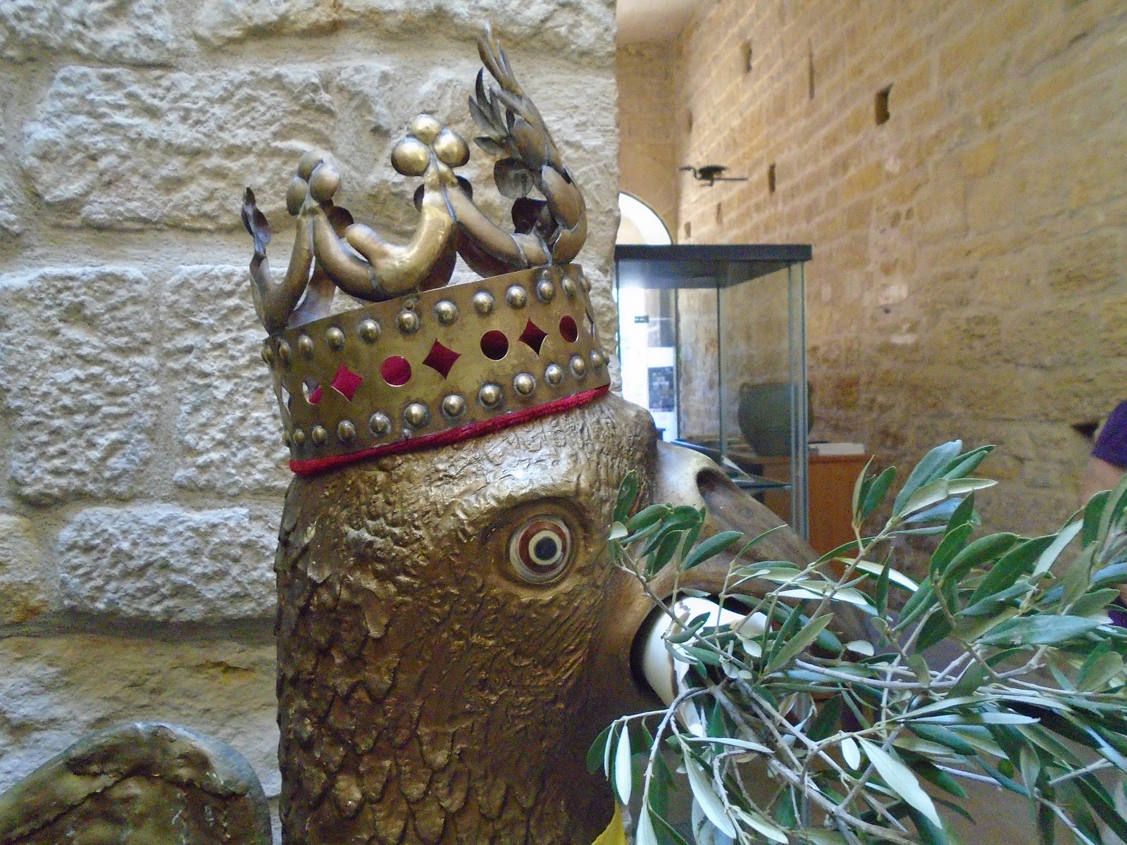 Rèplica de l'aliga més antiga de Catalunya, detall del cap i la corona