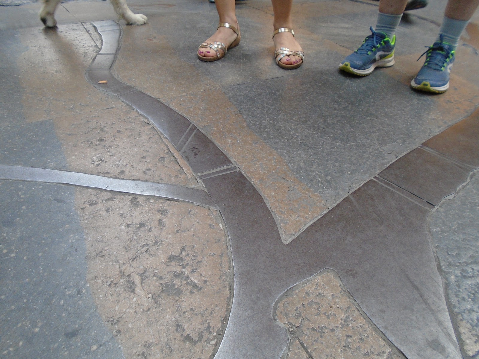 Dibuix al terra dels quatre rius i ponts de Girona.