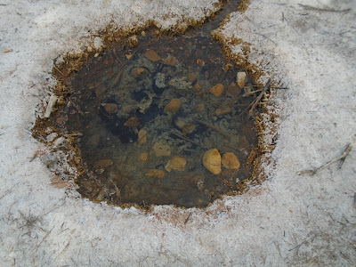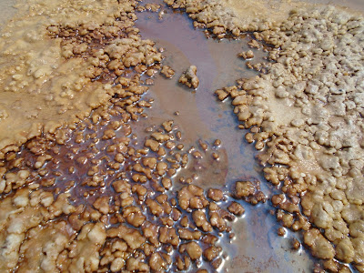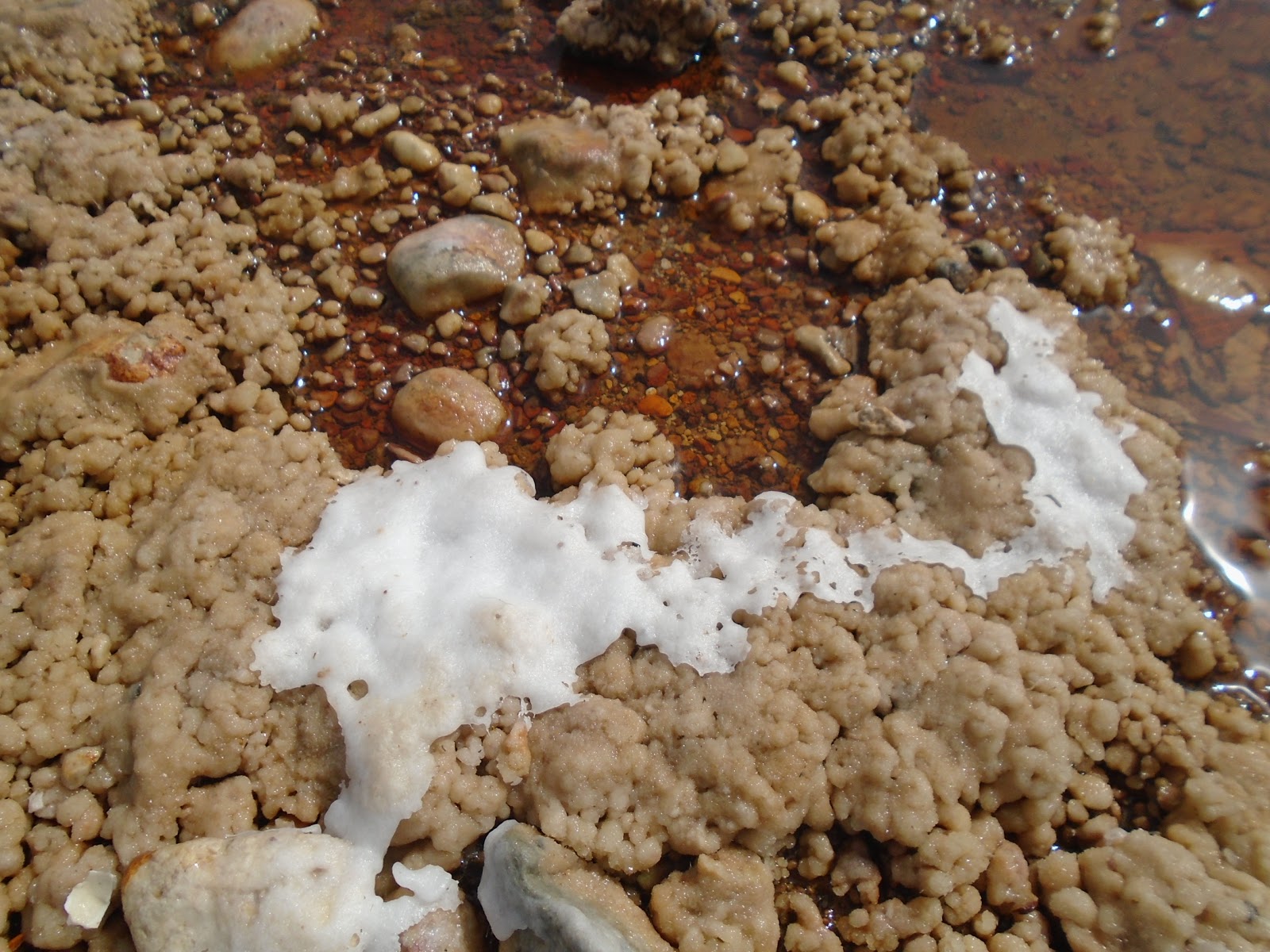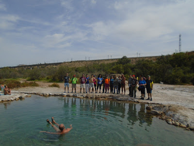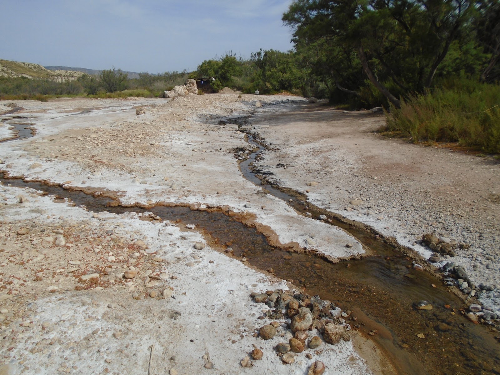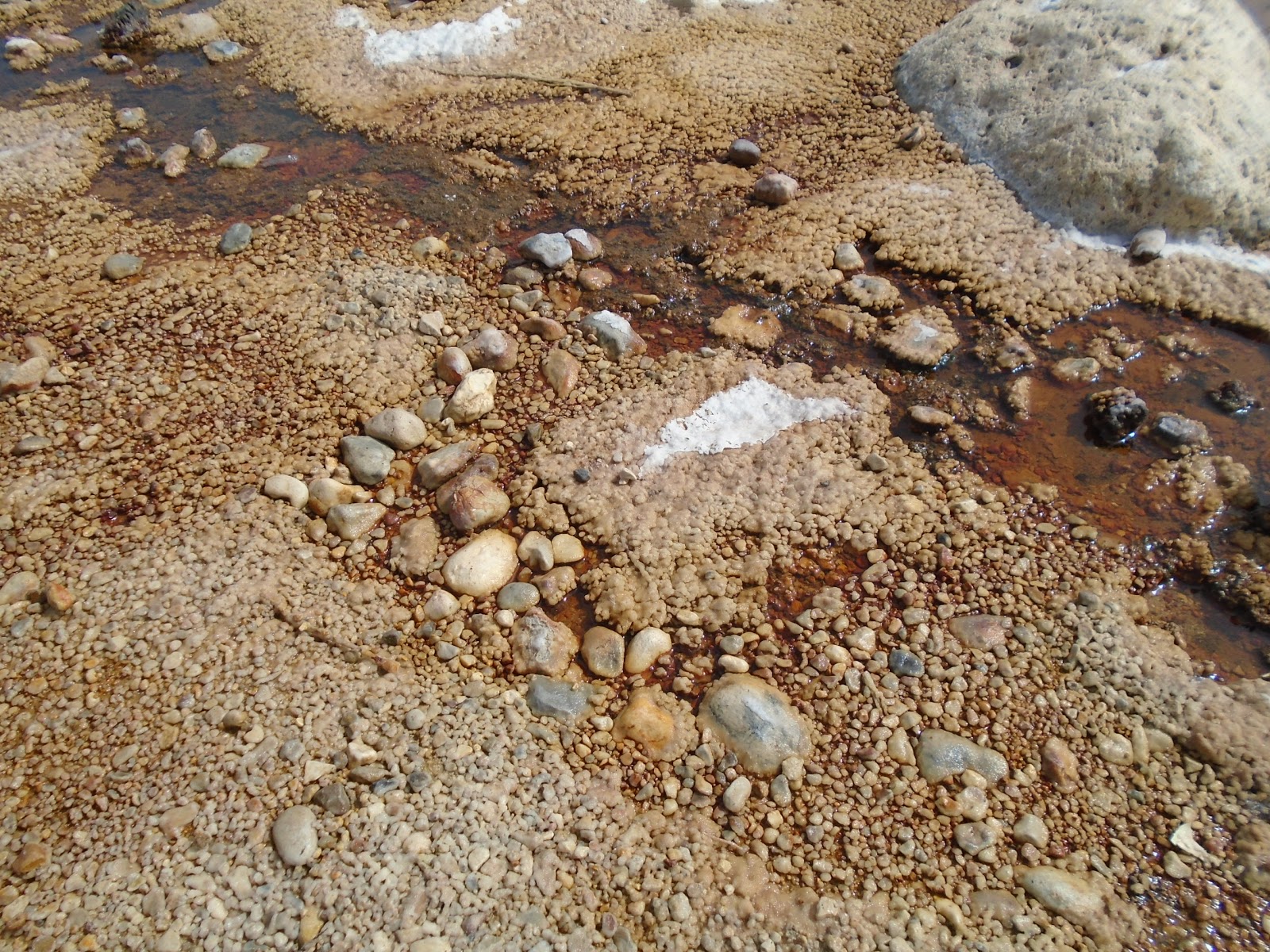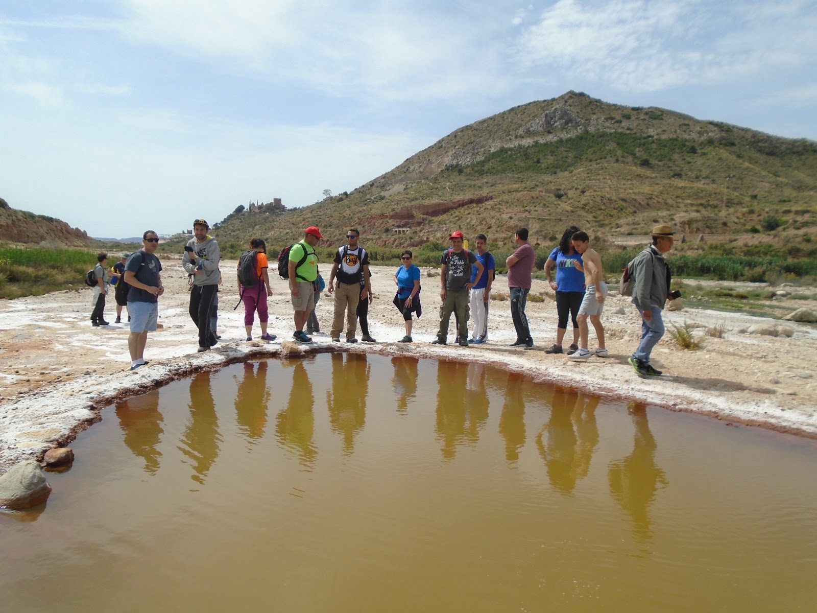 Més endavant ja veiem el castell de la Mola i l'església de Santa Maria. Però abans d'arribar al castell encara ens quedava una sorpresa molt agradable. En un moment del camí vam eixir de la pista i ens vam trobar amb una serie de tolls on l'aigua salada era tan densa que les persones que es banyaven flotaven, la sal feia crostes sobre la terra donant la sensació de la blancor de la neu, i així es formaven una serie de colors que li donaven molta màgia al paisatge.