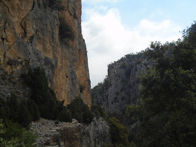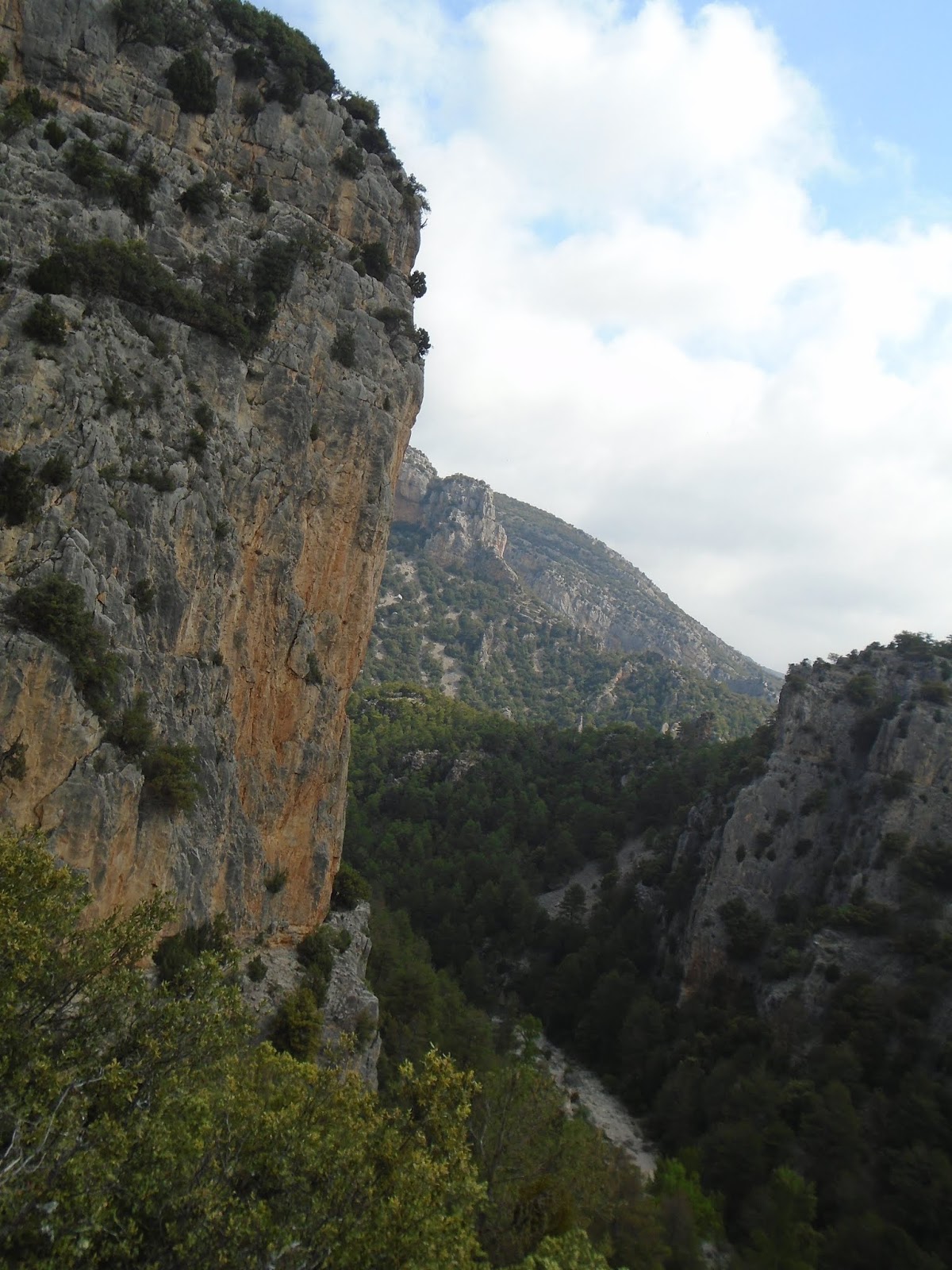 Aquell dia no vam veure cabres salvatges, però recordava altres vegades veure-les a la llunyania, com saltironejaven entre els matolls. Especialment era vertiginós el tallat vertical de la roca Roja. Vam davallar fins que la senda moria a la llera pedregosa de la rambla Sellumbres.