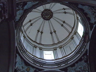 Mari Carmen ens va portar per unes escales on hi havia les pedres marcades amb creus tal vegada templàries. Després vam visitar l'interior de l'església de Sant Pere Apòstol , a dintre brillava la seua cúpula.