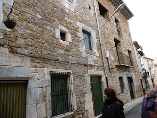 Al nostre davant Benassal s'anava aproximant als nostres peus, com una fita propera, i entre bancals d'avellaners anàvem entrant al teixit urbà fins que pel carrer de la Creveta vam ensopegar vora les altes torres que reforçaven la muralla. En arribar a la plaça vam entrar al bar per dinar, el nostre grup ocupava dues llargues taules, i de fons el penó de les quatre barres, com una insígnia compartida per nosaltres. Després d'assaborir els àpats més suculents del bar del poble, Balma i Aitana ens van donar una sorpresa, Aitana va recitar un poema, després vam eixir i Oscar Vives ens va fer la visita pel poble. Era un luxe que Oscar Vives ens expliquès tota la seua investigació sobre els bombardejos nazis a Benassal i els pobles del voltant.