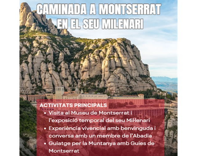 Ens arribarem caminant a la Muntanya de Montserrat fins el Monestir, on podrem gaudir de la benvinguda i conversa amb un membre de la congregació. Farem nit a les cel·les de l'Abadia de Montserrat.