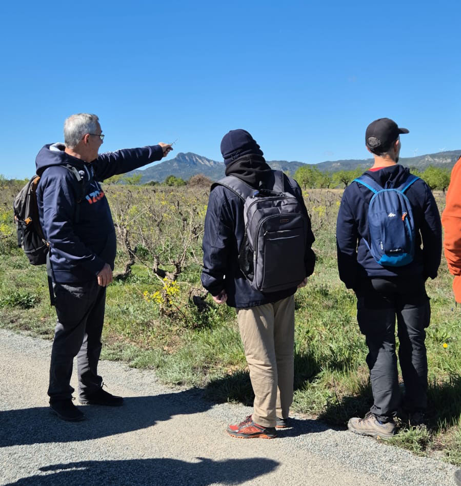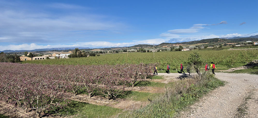 Un cop acabada la immersió històrica, vam deixar els cotxes al poble de Miravet i vam començar a fer el Camí. Després d'un primer tram de carretera per sortir de Miravet fins a arribar a Benissanet, ens vam endinsar en un mosaic de colors gràcies als camps d'albercoquers, cirerers, ametllers i presseguers en plena floració.